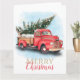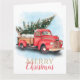 En charmerande målning av en rustisk vintage röd lastbil med ett vackert dekorerat Julgran. Den här teckningen fångar julhelgens värme och frammanar en glatt "God jul"-anda med sitt klassiska estetiska och festliga inslag.