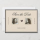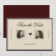 Elegant redaktionell stil Spara datum-kort med dubbla porträtt av paret för ett tidlöst och romantiskt bröllopsmeddelande.