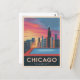 Vintage resor Chicago Sunset Skyline Cityscape Vykort