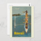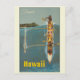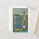 Vem som helst skulle vilja att kärlek fick detta vykort från vintage resor med en återillustration av människor i en kanot på havet i Hawaii!