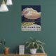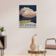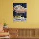 Se Amerika. Välkommen till Montana. Vintage resor poster för att USA:s resebyrå ska främja turismen och visa ett kluster av stipis med berg i bakgrunden.