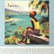 vintage resor poster en Jamaican Women sitta nära handflatan träd som njuter av havsabborre och underbara havsvikar.