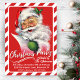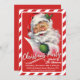 I denna inbjudan till julfesten i mitten av århundradet finns en klassisk återgivning av Jultomten som kontrollerar hans lista med en blinkning och en skugga i öga omgiven av en röd och vit candy cane gräns. Anpassa genom att lägga till din händelseinformation och ett alternativ för att lämna ytterligare ett meddelande på baksidan eller lämna det tomma baksidan.