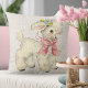 Denna kudde har en bedårande vintage-illustration av ett litet lamm med rosa band och blommor på en kompletterande fals linnebakgrund. Perfekt för påsk, barnkammare eller shabby chic-dekor.