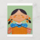 Vintage Retro Girl Knitting Vykort