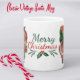 Denna älskling av ett slag mugg har ett Jultomten i mitten av århundradet som bär på en fullt av godis på vardera sidan med en bild av God jul i mitten.