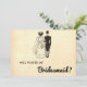 Detta kort för återmatad tecknad frieri i vintage är lämpligt för ett modernt bröllop. Den gamla minimalistiska designen har Vintagen Retro Romantic Bride Groom Bridesmaid Card