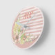 Vintage Retro Rosa Blommigt Rand Monogrammad Rund Klocka
