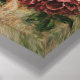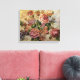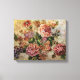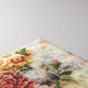 Bröstkluster av ro och andra blommor är strängt placerade på en mjukt texturerad bakgrund, vilket skapar en harmonisk blandning av färg. De ömtåliga petterna och spola grey tillför elegans och tidlös skönhet