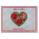 En blommigt i röd ros som ser vintage ut mot grönt lövs. Perfekt för Alla hjärtans dag eller att bara uttrycka kärlek. Det finns två ställen som du kan anpassa genom att lägga till en egen text. Du kan ändra både teckensnitt och text färg. Du kan också byta färg i gräns eller ta bort det helt.