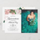 Quinceanera-inbjudan med vintage ro och elegant på vit bakgrund med ett eget foto för den speciella beröringen. All information finns i en kombination av elegant och skriptteckensnitt. Du kan anpassa alla skript och ändra färg till dina egna inställningar. Baksidan har en stor bukett av ro. Fantastisk inbjudan till den viktiga milstolpen i dina flickors liv