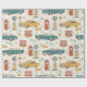 Lantlig reseinspirerad mönstrat inslagspapper med gammaldags bilar, vintage vägmärken, blad och retro-äventyrselement i en charmig landsbygdsmiljö. Perfekt för road trip-älskare, vintage-entusiaster, resenärer och alla som älskar nostalgisk resestetik.