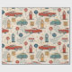 Lantlig reseinspirerad mönstrat inslagspapper med gammaldags bilar, vintage vägmärken, blad och retro-äventyrselement i en charmig lantlig stil. Perfekt för road trip-älskare, vintage-entusiaster, resenärer och alla som älskar nostalgisk resestetik.