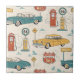 Rustic travel-inspired pattern ceramic tile featuring old-style cars, vintage road signs, leaves, and retro adventure elements in a charming countryside style. Ideal for road trip lovers, vintage enthusiasts, travelers, and anyone who loves nostalgic travel aesthetics.
