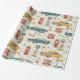 Rustic travel-inspired pattern wrapping paper featuring old-style cars, vintage road signs, leaves, and retro adventure elements in a charming countryside style. Ideal for road trip lovers, vintage enthusiasts, travelers, and anyone who loves nostalgic travel aesthetics.