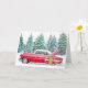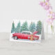 Denna gamla röda bil och släde ger den vintage känsla av en jul från svunna dagar. Att ta en slädutflykt under högtiderna var så kul, speciellt med ett lätt snöfall. På baksidan av bilen är en liten pojke som drar sin släde. Medan på insidan är en gammal God Jul hälsning.