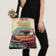 Vintage röd bil och tomt tygkasse