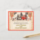 Julhälsningskort från tidigt 1900-tal i art déco-stil med en grupp som åker genom skogen i snö med en hästdragen vagn, på väg mot en snöklädd stuga i stilen för pepparkakor på landsbygden, den karl som kör vagnen har en halsduk som virvlar högt upp i luften, troligen på väg till en julfest! Med dekorativ ram och ljus i rött, vitt, svart och guld, med julliga hälsningar och redigerbart meddelande i vintage-guldsnitt på framsidan och text på baksidan, är det ett perfekt säsongskort för alla som älskar en vintage jul.