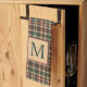 Denna prickiga monogrammerade kökshandduk har ett vintage julrutigt mönster i rött och grönt. Anpassa monogrammet med din valda initial. Blir en rolig present för en första julen i en ny lägenhet eller hem.