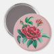 Vintage vattenfärg teckning i röd ros med grönt framträder löv på en ljus rosa bakgrund av pastellerna. Bakgrunden till färg kan ändras.