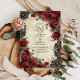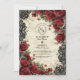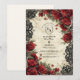 En dramatisk och romantisk bröllopsdesign med frodiga vintage röda rosor, ömtåliga svarta spetsaccent och en tidlös antik pergamentbakgrund. Perfekt för par som söker en passionerad, gotisk-inspirerad estetik för deras speciella dag.