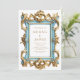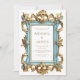 Denna eleganta bröllopsinbjudan har en utsmyckad vintage rokoko stilmöbel i pastellblått och guld. Anpassa den guldfärgade texten med dina namn och bröllopsdetaljer.