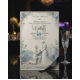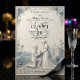 Meddela din tidlösa kärlekshistoria med en elegant, traditionell estetik med en vacker dammig blå och krämfärgad palett för din formella firande. Denna design visar upp en klassisk romantisk estetik centrerad kring ett vackert illustrerat motiv med ett par som friar. Den visuella hierarkin drar blicken från de känsliga blomstergänsarna – bestående av rosor, prästkragar och botaniska blad – ner till en man på knä med en ring framför en kvinna i en elegant klänning. Bakgrunden visar ett klassiskt kapell och en kullerstenstig mot en bakgrund av böljande kullar, allt utfört i en krämfärgad och elfenbensvit bas med dammiga blåa accenter. Layouten balanserar formell marinblå kalligrafiskrift med ren modern sans-serif-siffror och