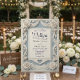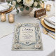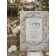 Förhöj ditt bröllop med denna falska 3D-rostill reliefdesign, med neoklassiska skifferblå nyanser och en romantisk illustration av en kyrka i arvlandskapet. Denna komposition uppvisar formella neoklassiska designprinciper, centrerade kring en hjärtformad landskapsutsnitt som visar en slingrande stig mot en traditionell kyrka. Den visuella fokuspunkten är en dimensionell ram av falskt skulpterade rosor och rosenknoppar, som härmar texturen hos gammal puts eller huggen sten. Färgberättelsen använder en sofistikerad palett av krämig off-white och dammig skifferblå, med marinblå accenter som ger djup kontrast. Typografin är balanserad med ett svepande dekorativt skrivsätt för namn och en strukturerad, läslig serif för evenemangsinformation, vilket säker