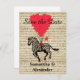Vintage romantisk zebra bröllop spara datum kungörelse, med en gammal antika illustration och ett romantiskt rött kärlekshjärta och ballonger, lätt att anpassa med din text för att skapa din egen speciella bröllops spara datum kungörelse.