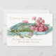 Romantisk bukett av vintage rosa-nejlikor och ribbon i en pastellteal box med faux guld Valentine hälsning. Kompletterande grafik och redigerbar blommigt fält på baksidan.