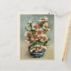 Anpassadets vykort för Vintage med rosa blommor i vas med blå illustration.