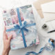 Vackert vattenfärgsvinnande jul mönster är rosans och gröntens nyck. Trendigets rosa julklapp som är papper. Tema rosa snö. Sömlös valsad papper förpackning.