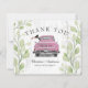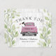 Skicka en anpassningsbar rustic studenten-tack till din familj och dina vänner med en vintage rosa lastbil med grön mot bakgrund av vitt och grått faux wood. Kortet lyder "Tack Class of 20xx" med ditt namn och din skola för att anpassa dig. Lägg till ett tackkort på baksidan av kortet eller ta bort det. Designad av konstnärer ©Tim Coffey och Susan Coffey.