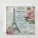 Söta blekrosa rosor, pärlor och spets, turkos och rosa Eiffeltornet Paris barnkalasinbjudan.