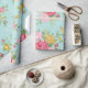 Vintage Rosa ros Bouquet Blommönster Teal Wrapping Papper