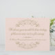 Hedra nära och kära som inte längre är med er på er speciella dag med denna hjärtliga minnestavla med texten "Vi vet att ni skulle vara här idag, om himlen inte var så långt borta." Utsirade filigree-kanter i guld ramar in den rörande hyllningen på en mjuk rosé bakgrund, med texten "Till min kära minne" nedan. Koordinerar med den fullständiga skrivbordsserien i rosé färgpalett. All text är helt anpassningsbar.