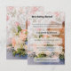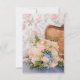 En charmig och nostalgisk design full av struktur. Denna inbjudan har en fantastisk bukett av peach nejlikor, vita rosor och blå accentblommor som vilar på en blå sammetsstol. Bakgrunden visar en flätad rottingstolen och vintage blomster tapet, vilket skapar en vacker "Fransk landsbygd" eller "Shabby Chic" estetik. Det är perfekt för trädgårdsbröllop, brud shower eller vårens tebjudningar.