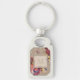 Vintage Rustic Blommigt Monogram Rektangulärt Silverfärgad Nyckelring