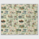 Festiv och färglös kollage med antika julkort med orustiska landskap, hälsning, blommor och holly med ljust grönt gräns. Mönster är sömlöst och kan byggas upp eller ned.