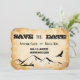 Dekorativa svarta snurrar och vrider den här vintagen i elegant inspirerade till perfekten för bröllop spara datum-annonsering för den upptäckta bruden och brudgummen.