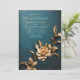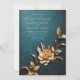 Avslöja den kungliga charmen i din kärlekshistoria med denna bröllopsinbjudan från "Theatrical Reverie Collection". Med en storslagen palett av förtrollande färger - blå, kunglig lila, grön, roströd, kolmörk svart och teater-röd - har denna inbjudan samma rustika texturerade ornamentala bakgrund. En dramatisk svepning av gyllene (kopparguld) metallisk 3D-lövverk och en blomma tar centrum, vilket ger överdåd och en kunglig touch till din fest. Fånga essensen av storslagen romantik och sätt scenen för ett oförglömligt bröllop med denna kungligt utsmyckade inbjudan.