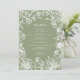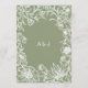 På menyn elegant bröllop finns ett handritat botaniskt ram med blommor, löv och jordgubbar av vild i vitt på en grönt. Anpassa den vita vintagen med menyalternativen. Utformningen av ram upprepas på kortets baksida, tillsammans med parets monogram initialer.