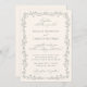 Elegant blomsterlinjekonst bröllopsinbjudan med en salvia gröna rosor chinoiserie ornamental ram design och elegant, vintage inspirerad handskriven teckensnitt.