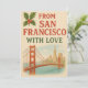 Skicka varmt önskemål från Golden City med det här charmerande julkortet vintage-stil: "Från San Francisco med Kärlek." Den här nostalgiska konstruktionen har den ikoniska Golden Grind-bron, stadskylinen och den festliga hollen och gör att perfekten säsong hälsning för Bay Area Lokals, resenärer eller älskare för klassisk helgdag stil.