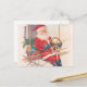 En charmerande antik 1915 års julkort illustration av Jultomten som flyger sitt luftskepp fylld med helgdag för alla flickor och pojkar. "Nu användor jag mitt luftskepp på mitt årliga Julafton resa, det är också fullt av leksaker och godis, och jag flyger rakt till dig."