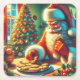Vintage Santa Eating Cookies Underlägg Papper Kvadrat