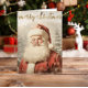 Skicka varmt helgdag med det nostalgiska julkortet med en glad vintage-stil Jultomten som står på en snöscen. Ord God jul visas högst upp i manuset i elegant guld och skapar det som ett tidlöst sätt för fessionsbeundran med vänner, familj och medarbetare. Perfekt för alla som kärlek traditionella helgdag med en mysigt, återkänsla.