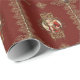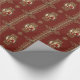 Rader av guld snöre och beklädnad med dekorativa hjärnor och graverade prydnadsföremål på hörnen med Victorian Santa image i ett guld graverat ram. Bakgrundsdesignen är förkroppsligad med röd dämpare.