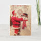 Retrokort med Jultomten som rättar till Snögubbe hat.