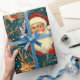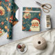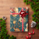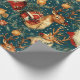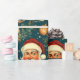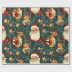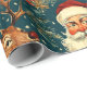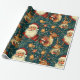 En vintage-inspirerad jul som slår pappra mönster med ett klassiskt Jultomten med ett glatt uttryck, omgiven av festligt inslag. Utformningen omfattar renar med stora antenner, prydnadsföremål från guld, inslagna gåvor och evergreen grenar som ställs mot mörkens tealbakgrund med spridda stjärnor, vilket ger en viskös, rustik beröring. Den handdragna, reflekterande illustrationen stil fångar den nostalgiska charmen från en traditionell helgdag, skapar en varm och bjuder in känsloladdad perfekt för att slå in gåvor under julsäsongen.